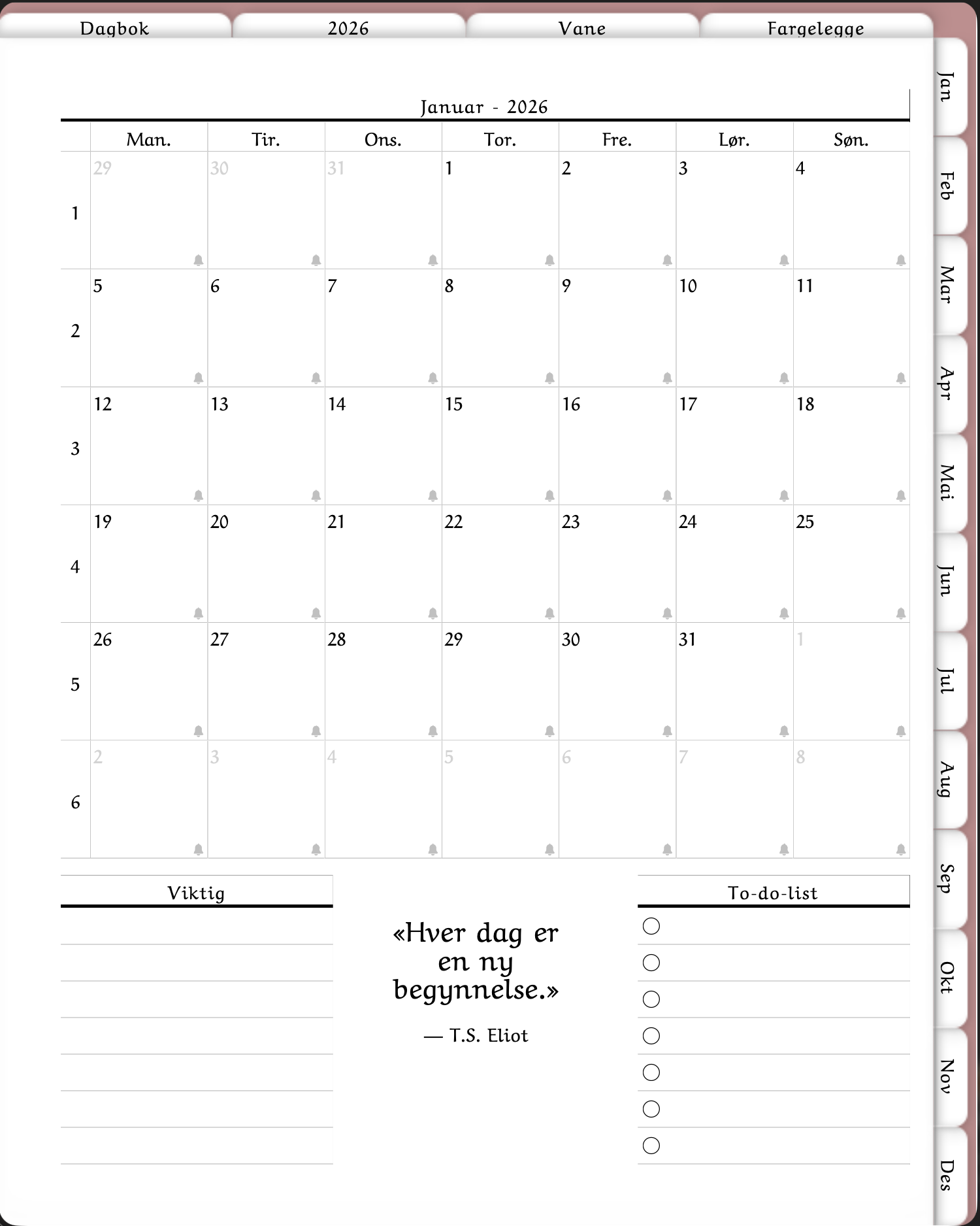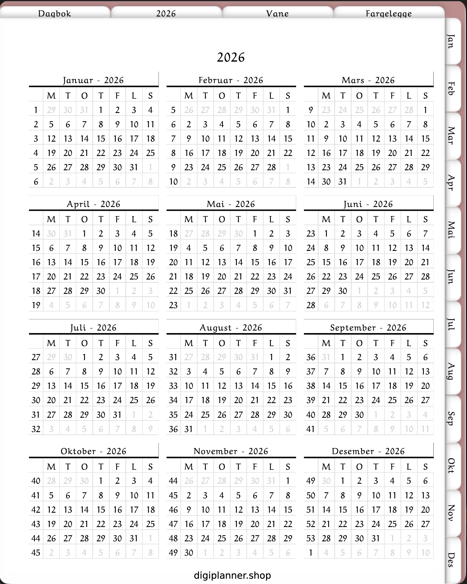 Vær oppmerksom på at denne digitale planleggeren er beskyttet av opphavsrett. Kjøpet er kun ment for personlig bruk og ikke kommersiell. Det er forbudt å videreselge, reprodusere eller distribuere på noen måte.