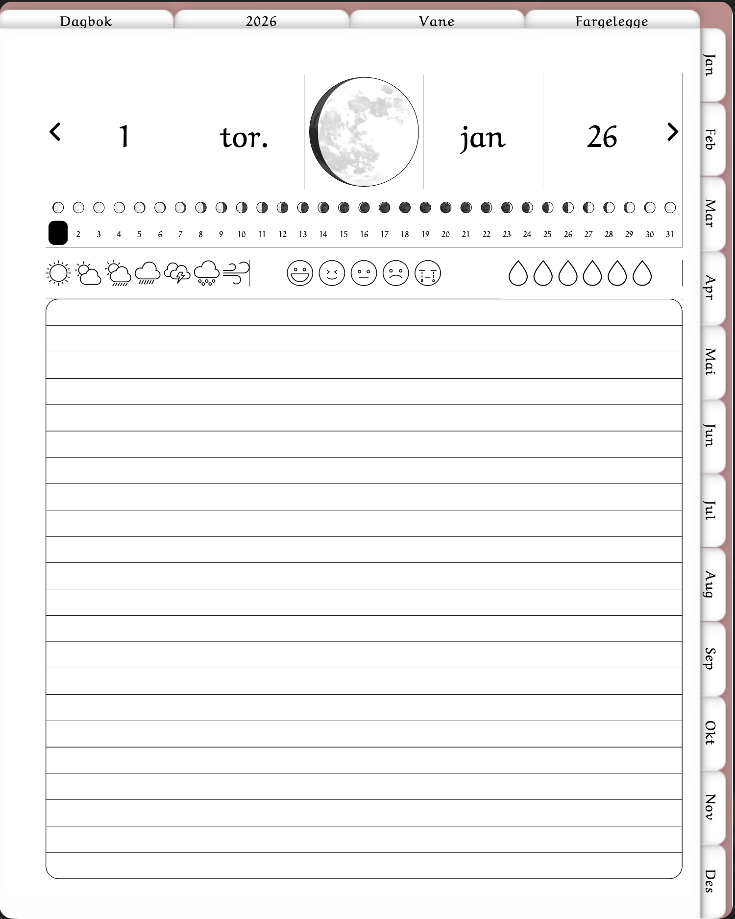 🌙 Dagbok 2026 – Din personlige reise gjennom året